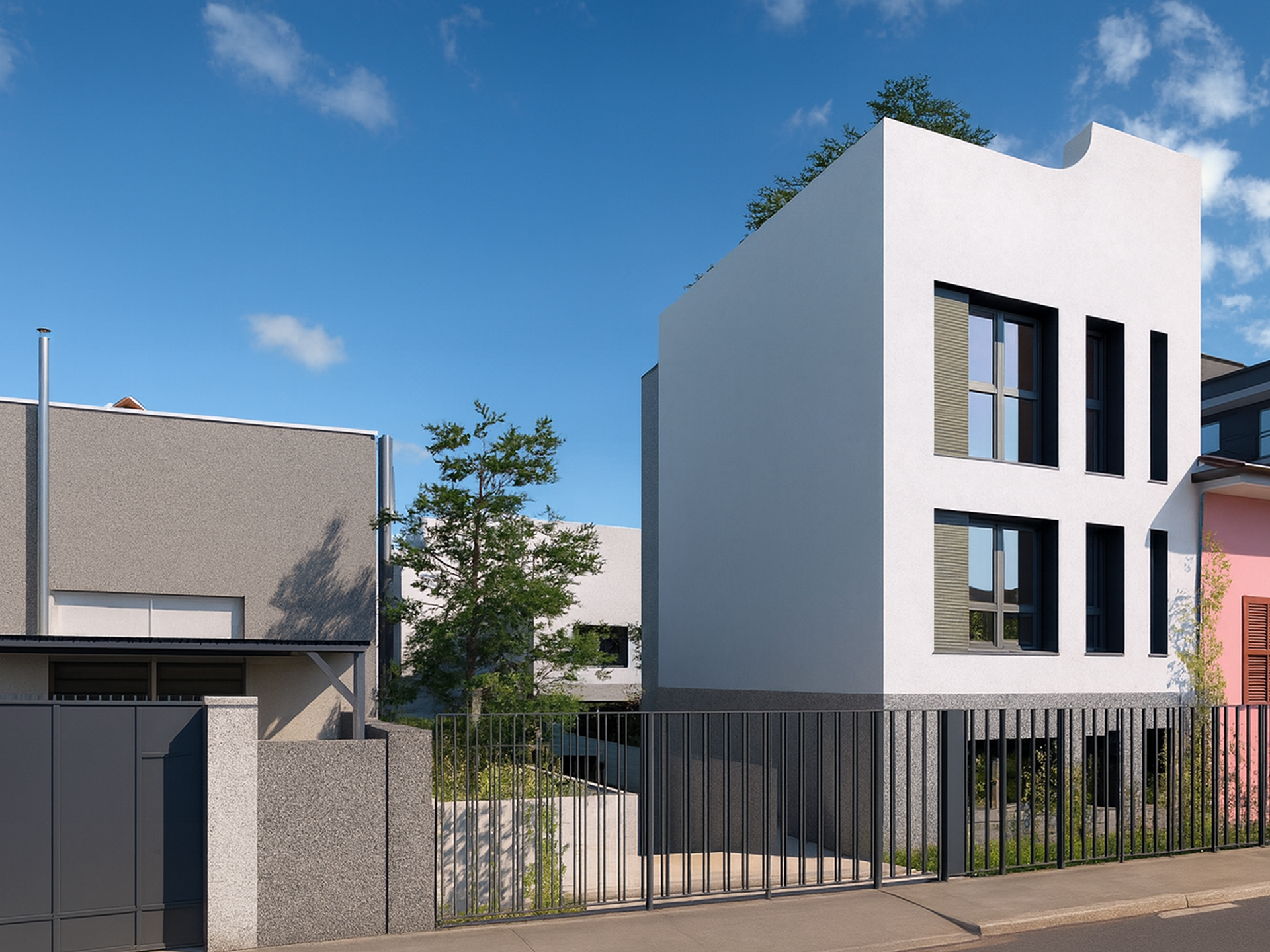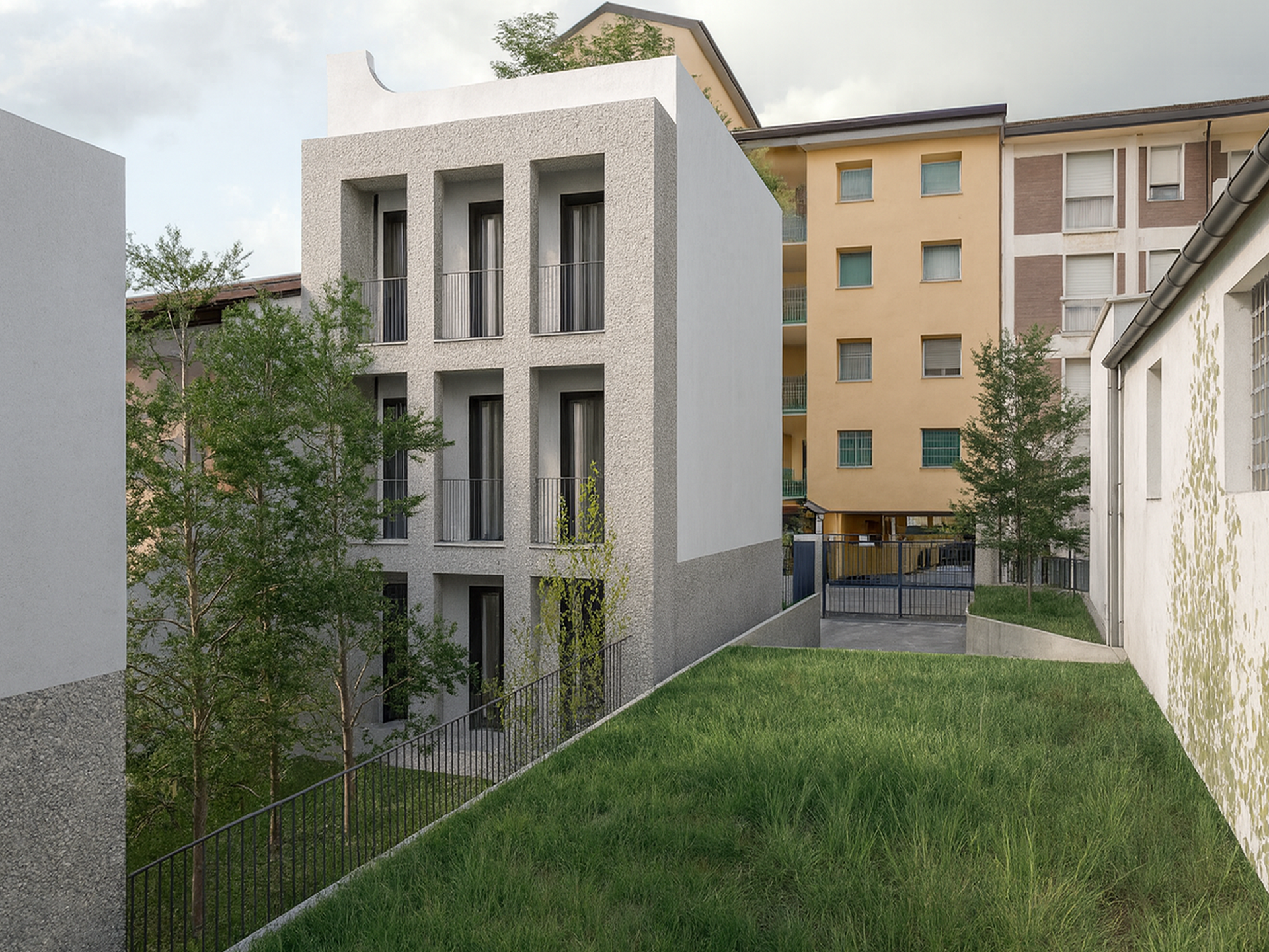 In un’area ex industriale della zona nord di Milano, lungo la linea 1 della metropolitana, il progetto si misura con un lotto molto stretto e contenuto, dove ogni scelta progettuale diventa cruciale. La sfida è trasformare questo limite in un’opportunità, ricomponendo due piccoli volumi residenziali in un unico complesso abitativo capace di generare qualità e relazioni senza alterarne le forme. Il progetto prevede la demolizione e la ricostruzione in sagoma degli edifici esistenti, mantenendo la destinazione residenziale ma ridefinendo aperture, spazi comuni e percorsi. Le ridotte dimensioni dell’area impongono una soluzione unitaria e compatta, in cui la condivisione diventa il vero valore aggiunto dell'intervento. Il corpo principale, su tre livelli fuori terra, si affaccia sulla via carrabile e dialoga con le architetture circostanti. Il secondo volume, più piccolo e raccolto, si colloca nell’angolo sud-est. Tra i due edifici prende forma un giardino alberato che diventa cuore verde e spazio d’incontro, luogo di accesso ma anche di relazione. I residenti condividono non solo i locali tecnici e alcuni spazi accessori, ma anche la quotidianità di un complesso che favorisce un senso di piccola e ricca micro comunità. Ogni unità mantiene il proprio giardino privato, mentre le aree scoperte si arricchiscono di nuove piantumazioni, rafforzando il legame con il verde, reale e visivo. Le facciate, reinterpretate con linguaggio contemporaneo, restituiscono un’identità semplice ma precisa, in dialogo con il tessuto urbano milanese. Così, da un lotto difficile e minuto nasce un intervento che unisce rigore e socialità, trasformando i vincoli in un’occasione di vita condivisa e più ricca. Il progetto in collaborazione con gli architetti, Daniele Zerbi, Antonio Ciampoli e Nicola Levati è stato consegnato nel 2024.