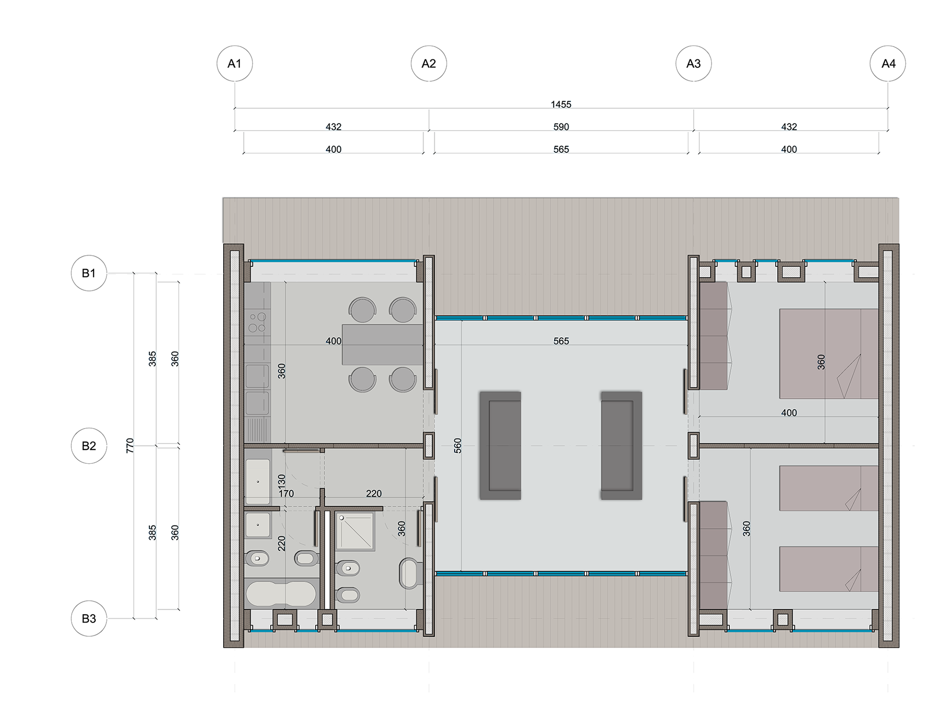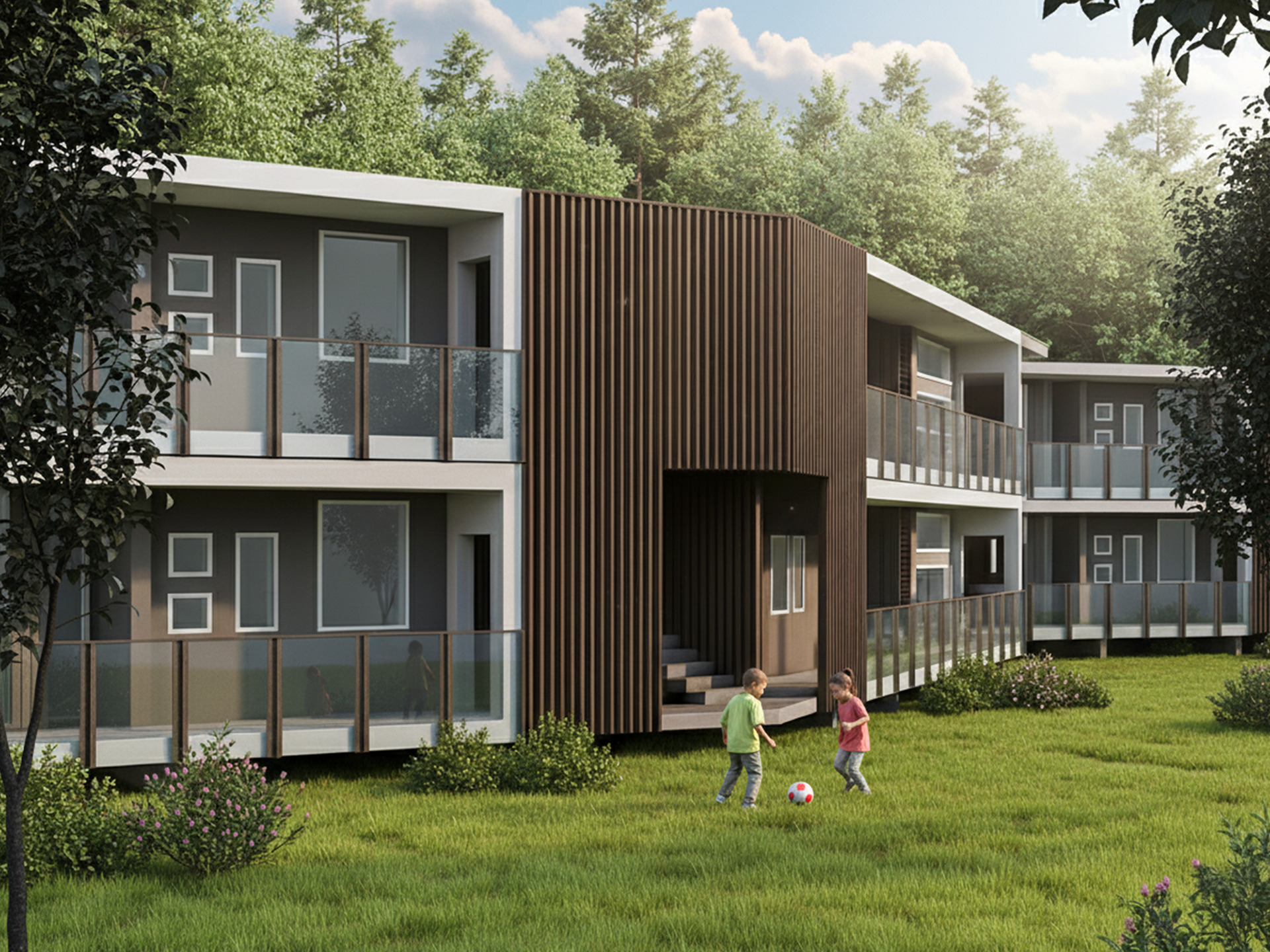 EasyBox è una cellula abitativa modulare nata dall’osservazione della crescita naturale dei rami di un albero: una regola semplice capace di generare un disegno sempre nuovo e sorprendente. L’elemento base diventa parte di un sistema più ampio, adattabile e mai banale. La costruzione utilizza esclusivamente il sistema POLIESPANSO, con setti portanti e solai Plastbau Metal, garantendo solidità, isolamento termoacustico e semplicità costruttiva senza ricorso a pilastri. L’involucro esterno raggiunge spessori elevati, assicurando prestazioni energetiche e comfort abitativo. La distribuzione interna è chiara: una zona notte e una zona servizi collocate ai lati, collegate da un grande soggiorno centrale passante, flessibile e privo di corridoi, con doppi affacci vetrati che rendono la cellula indifferente all’orientamento. I bagni ricevono sempre luce e ventilazione naturale, mentre la camera principale è orientata a nord per maggiore comfort. Il rapporto tra dentro e fuori si concentra nel cannocchiale centrale che mette in continuità il soggiorno con la loggia e l’eventuale giardino. La loggia stessa diventa accesso esclusivo e spazio di espansione, conferendo ulteriore variabilità al modulo. Il soggiorno funge da polmone abitativo capace di espandersi o contrarsi verso l’esterno semplicemente spostando le vetrate. Questo meccanismo permette di differenziare ogni cellula e di creare configurazioni sempre nuove. EasyBox può esistere come unità isolata o aggregarsi in sistemi più complessi, anche multipiano, grazie a corpi scala prefabbricati che consentono aggregazioni lineari o ramificate. In questo modo l’insieme costruito acquista varietà, qualità spaziale e capacità di adattamento a contesti diversi. Le finiture esterne, in intonaco, pietra o legno, rafforzano l’integrazione con l’ambiente naturale.