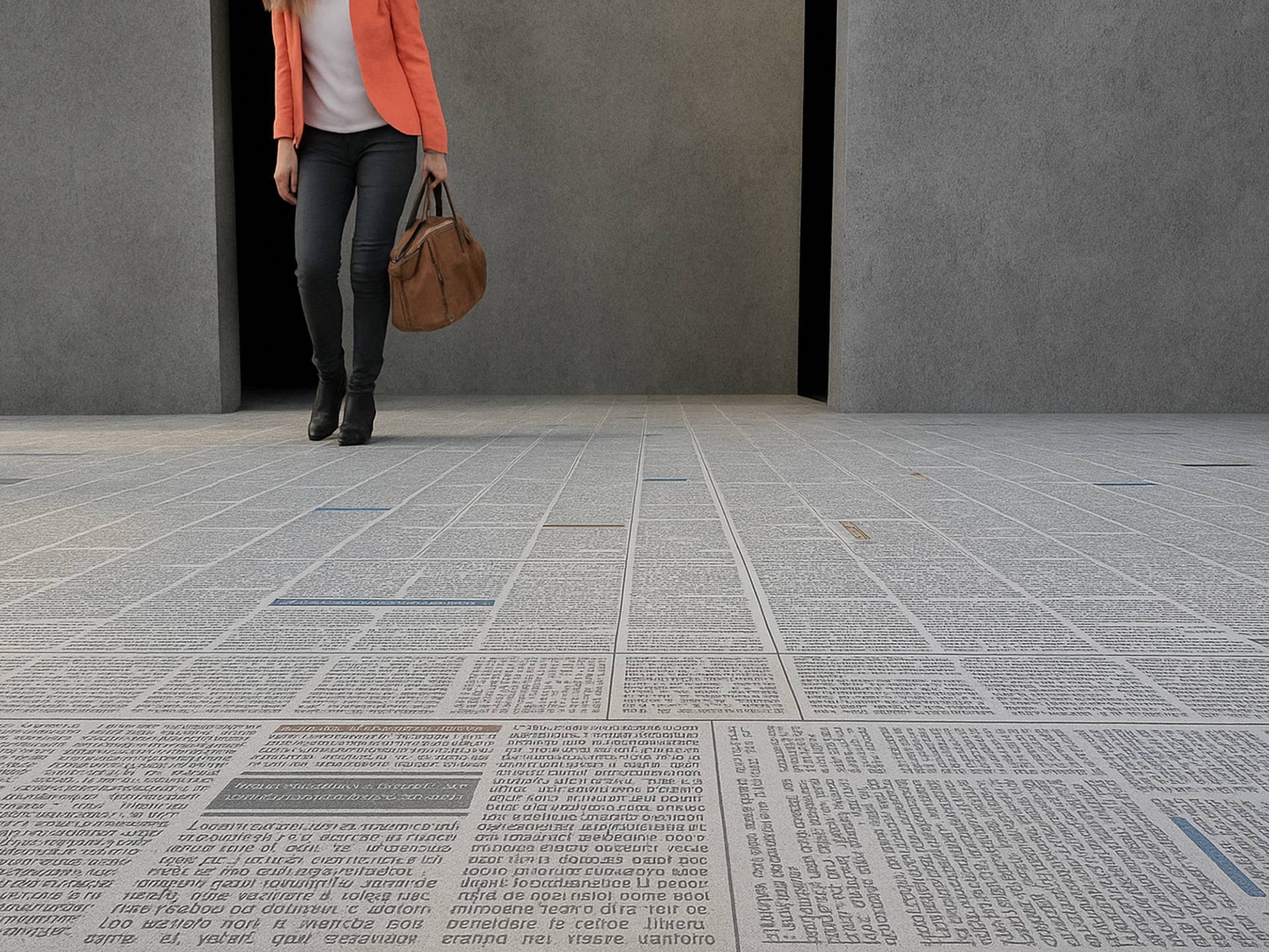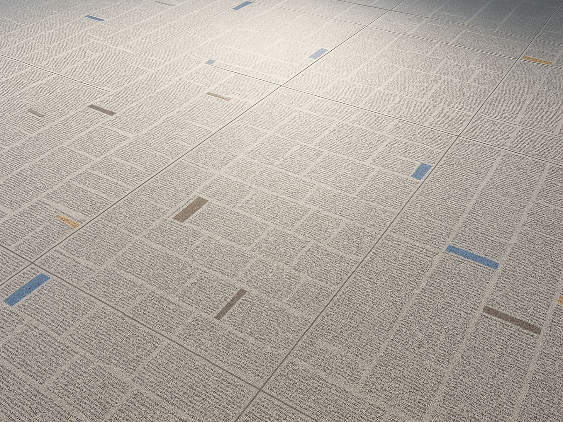 "MarkedPaper": la texture della pagina di giornale che da peso ma scompare, l’equilibrio di pieni e di vuoti che sottendono un disegno a frammenti, l’alternanza di chiari e di scuri, le marcature che creano una trama secondaria ed un gioco al richiamo, la libertà di posare gli elementi in maniera casuale e ruotata, sono le caratteristiche del progetto MarkedPaper per ceramiche REFIN.