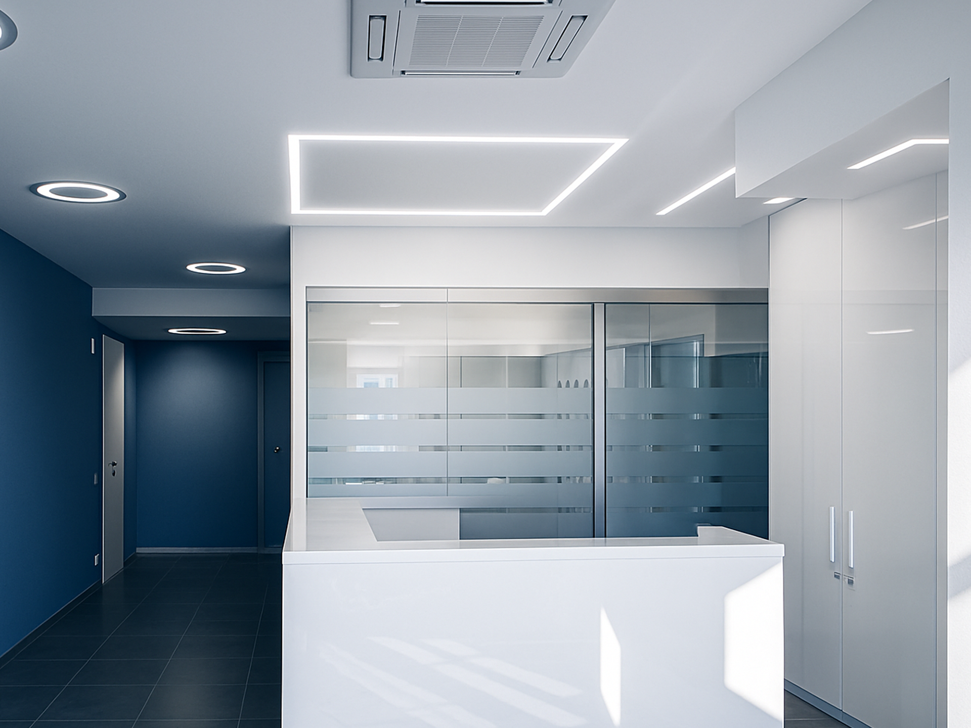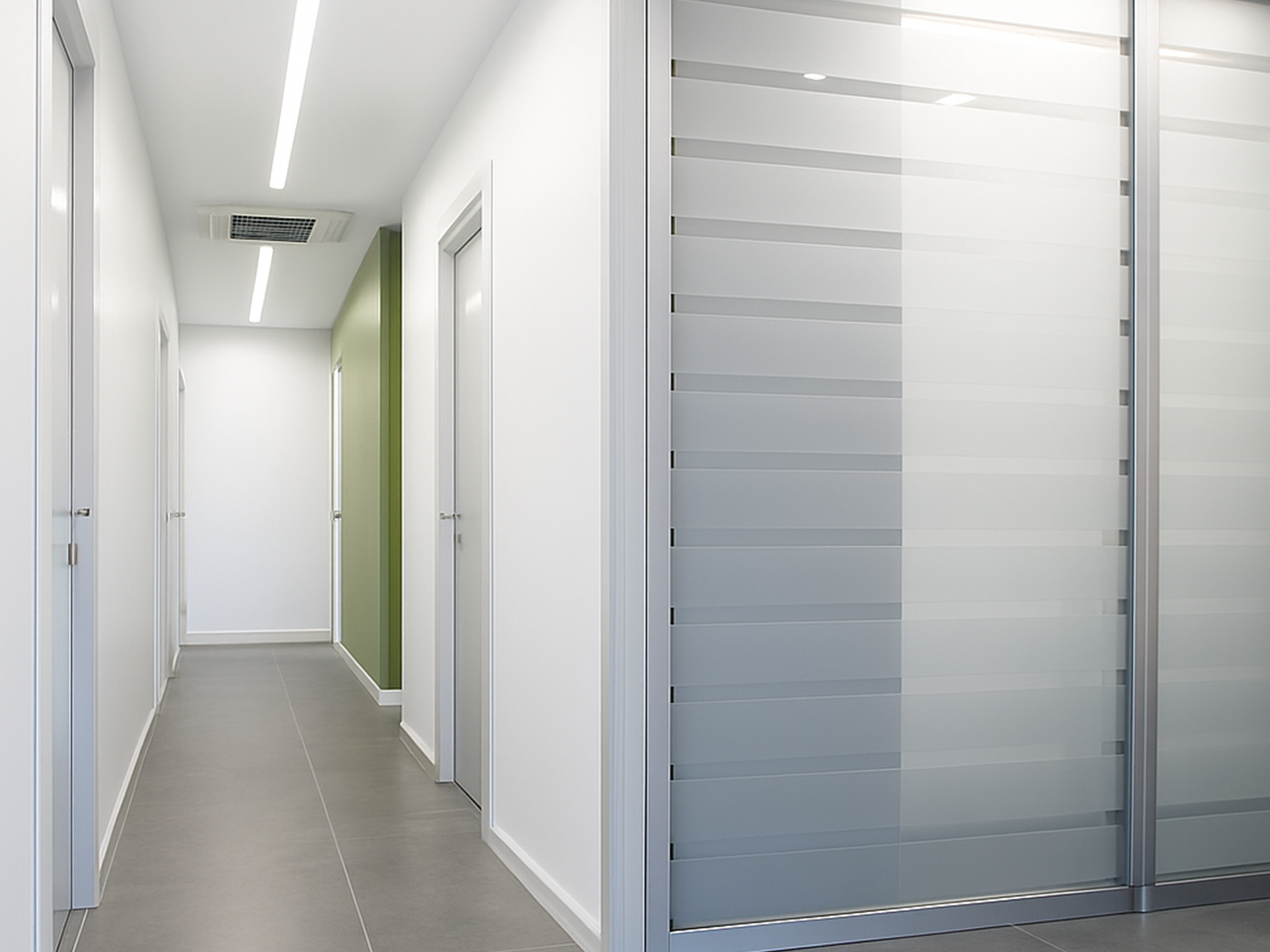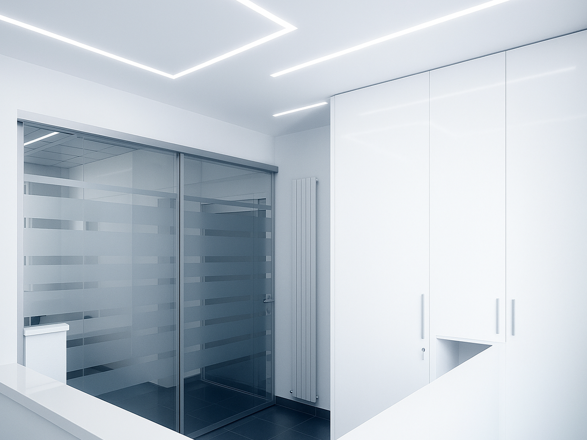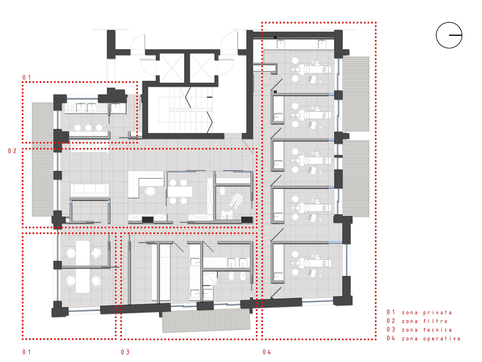 Ad Imperia un ampio appartamento degli anni ’70 è stato trasformato in un moderno studio dentistico. Lo spazio, caratterizzato da aperture su tre lati, beneficia di una luminosità naturale diffusa e costante. Il layout è stato sviluppato sulle esigenze dello staff medico, con una distribuzione chiara e funzionale che separa i flussi di operatori e pazienti. I cinque ambulatori con riuniti, di cui uno adibito ad attività chirurgica, sono collocati sul fronte nord per garantire luce uniforme e non abbagliante. Sul lato sud trovano posto l’area d’attesa e gli studi dei due medici, mentre al centro un nucleo operativo raccoglie gli spazi di laboratorio, l’archivio e una sala meeting collegata alla reception. Particolare attenzione è stata dedicata agli impianti, con reti capillari per luce, aria e acqua, distribuite puntualmente in ogni ambiente. L’illuminazione generale e quella di precisione si alternano in base alle funzioni, creando condizioni ottimali per le diverse attività. Trasparenze mirate e tocchi di colore caratterizzano gli spazi, rendendoli riconoscibili e accoglienti per i pazienti. I lavori si sono conclusi nel 2012.