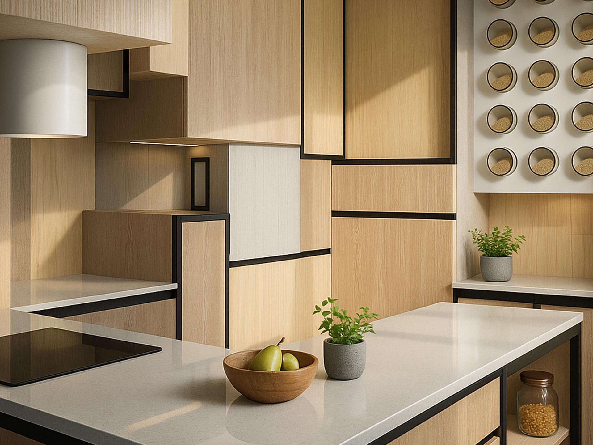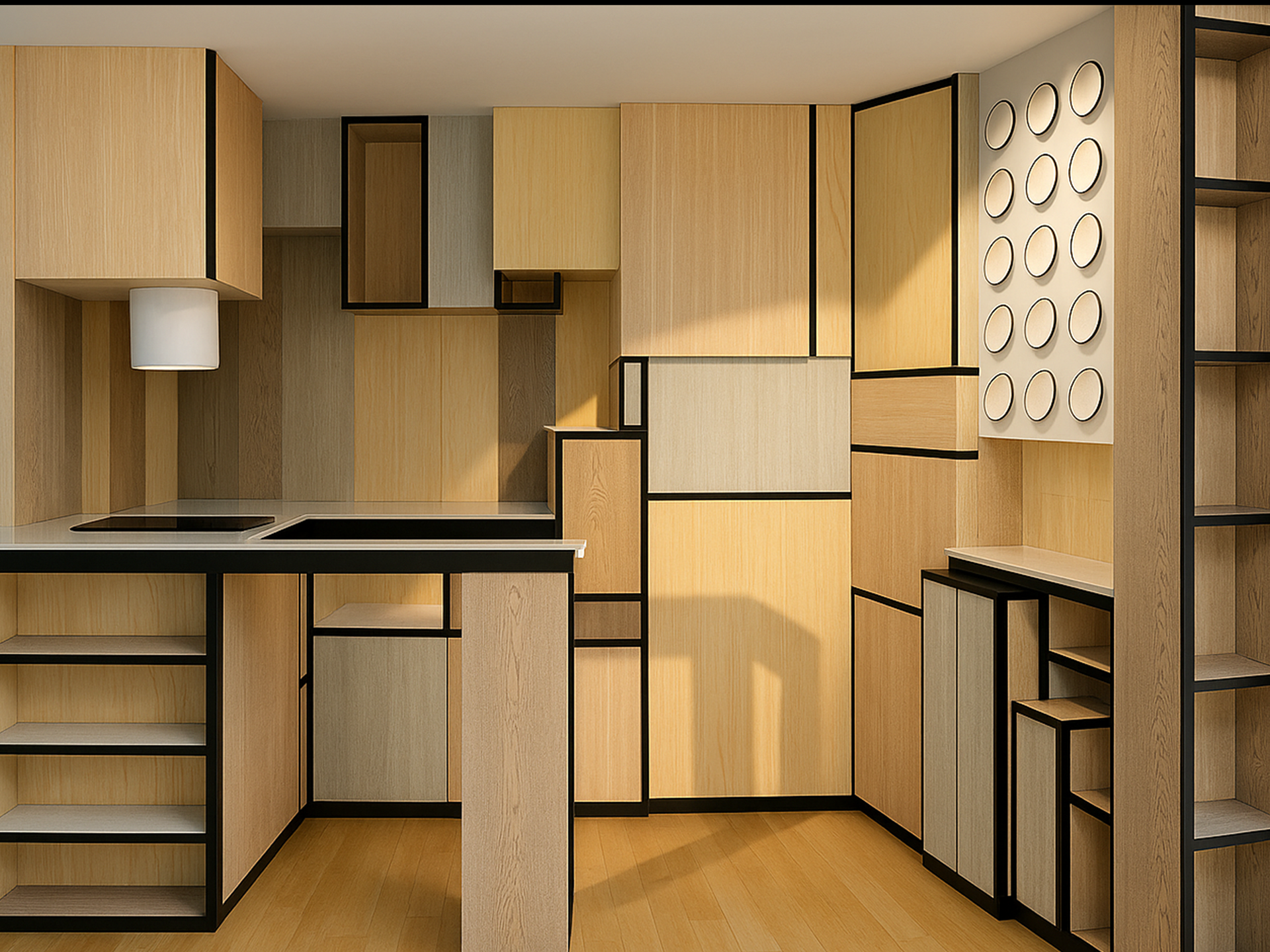 CHEF TETRIS nasce dalla ricerca di una cucina piccolissima, con misure fuori squadra, altezza ridotta ed economia di mezzi. Qui le regole delle cucine a catalogo vengono sovvertite ancor più del dovuto: addio ad allineamenti perfetti, gole rigorose, moduli ripetuti. Al loro posto un incastro volutamente imperfetto di pezzi unici, senza misure ricorrenti. Elementi che sbordano, arretrano, salgono o scendono in una composizione dinamica, quasi caotica, una sorta di Tetris esploso che trasforma i limiti in carattere.