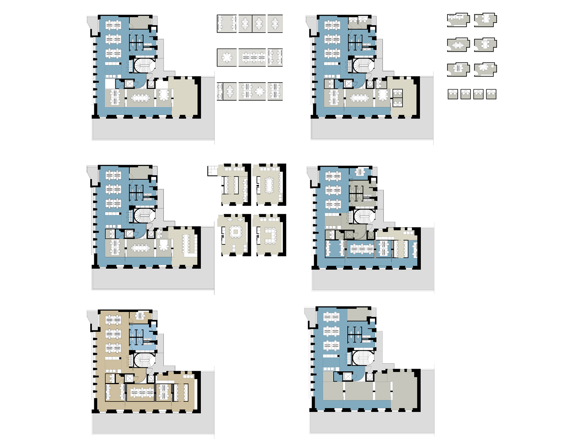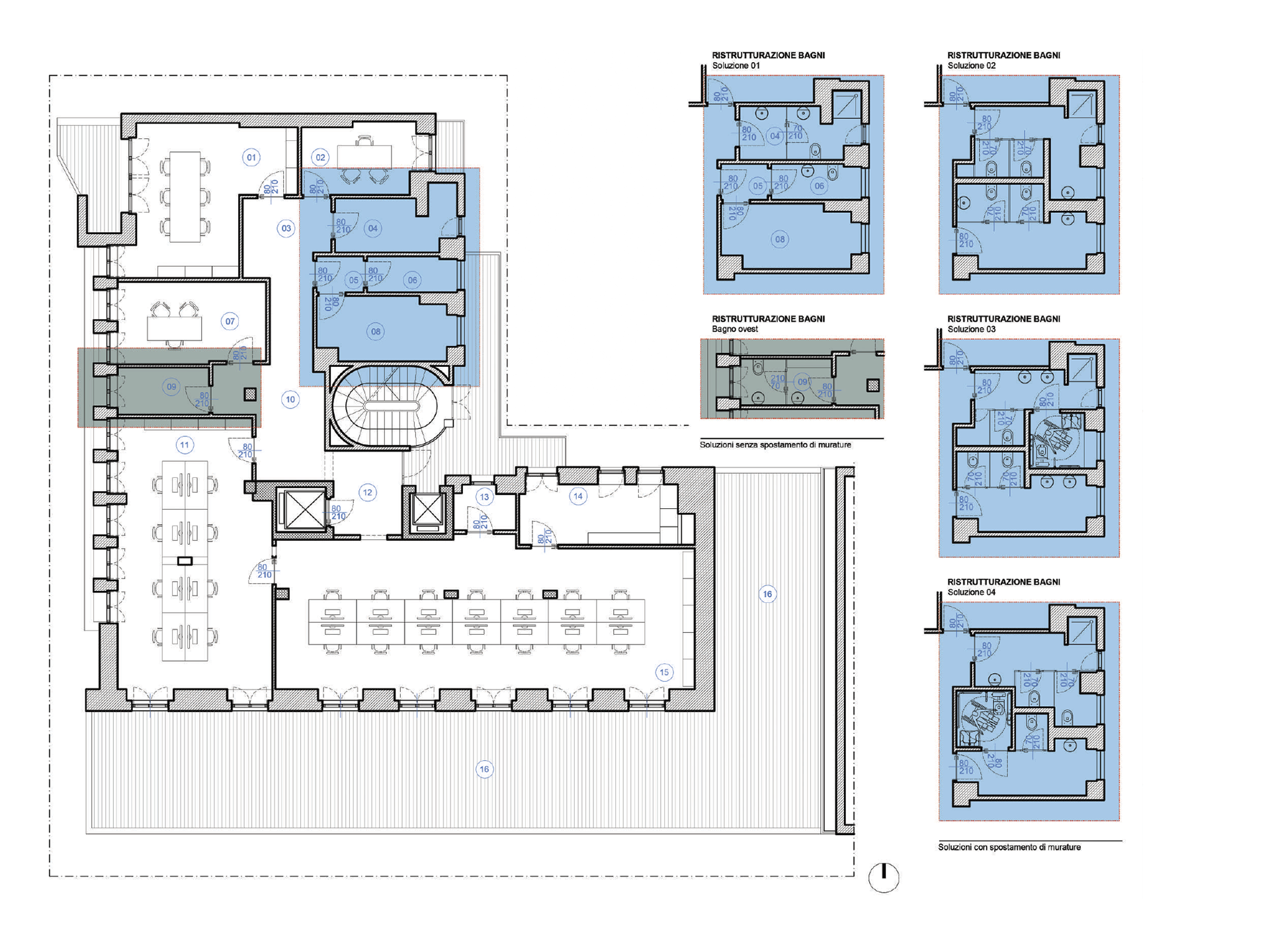 Nel centro di Milano, gli uffici di una società multinazionale sono stati ripensati per adeguarsi alle nuove modalità di lavoro emerse dopo la pandemia. Al sesto piano, un ampio terrazzo rivolto a sud è stato ristrutturato per diventare uno spazio ibrido: luogo di lavoro all’aperto e area pausa. Gli ambienti interni ospitano circa 30 postazioni operative, senza vincolo di assegnazione, a supporto di un modello che alterna presenza e smart-working. Per garantire comfort visivo, l’irraggiamento e l’abbagliamento delle facciate sud e ovest vengono controllati disponendo due grandi tavoli al centro degli open-space, lontani dalle fasce più calde. La scelta di tavoli centrali, sganciati dalle pareti, elimina gerarchie, ottimizza l’uso dei pilastri per i cablaggi e restituisce flessibilità agli operatori. L’intervento comprende anche il rinnovo degli impianti elettrici, dati e condizionamento, per offrire un ambiente di lavoro funzionale, confortevole e contemporaneo. I lavori si sono conclusi nel 2023.